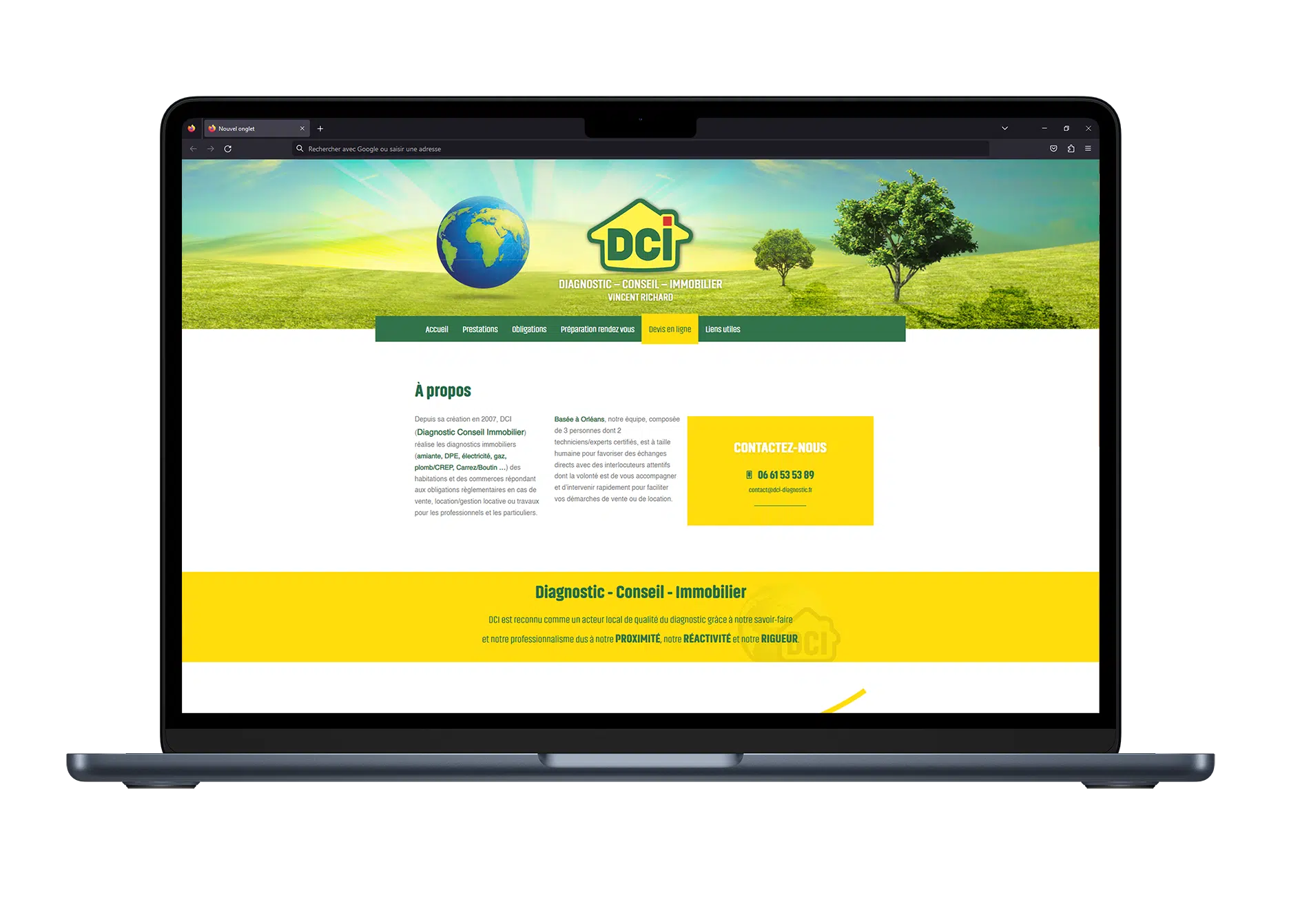 Ce site vitrine se veut simple mais surtout efficace ! En effet, le but ici était de réaliser un site WordPress qui permette aux utilisateurs d’accéder à des conseils et des diagnostics immobiliers à portée de clic. Il fallait donc pour cela quelque chose de clair et d’ergonomique. Ainsi, les onglets présentant les points majeurs sont répartis efficacement. Mais surtout, l’outil de devis en ligne est bien visible et rapidement accessible pour tous, afin d’obtenir sans trop attendre les informations désirées.