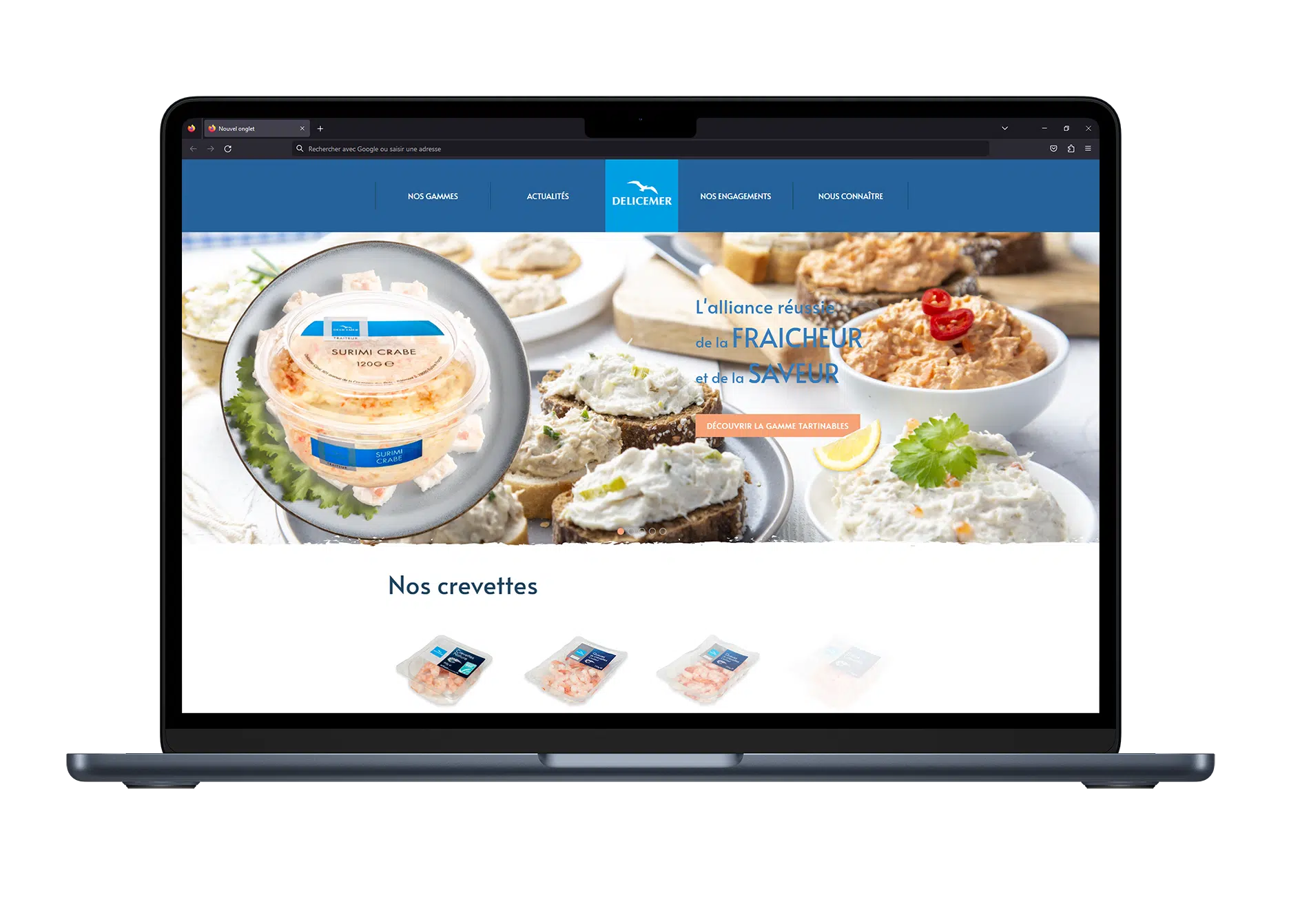 Ce site vitrine met en avant la fraîcheur et la diversité d’une gamme de produits engagés pour le développement durable. Avec une telle thématique, nous avons privilégié un design épuré avec une corde marine servant de fil rouge à la lecture, et faisant un élégant rappel au thème de ce site. A cela s’ajoutent des animations au déroulement de la page, pour apporter du dynamisme au site. De plus, avec son design responsive, ce site WordPress s’adapte à toutes les tailles d’écran, et est donc accessible sur tablette, PC ou smartphone. Un site frais et dynamique, en accord avec les envies et les valeurs de Delicemer !